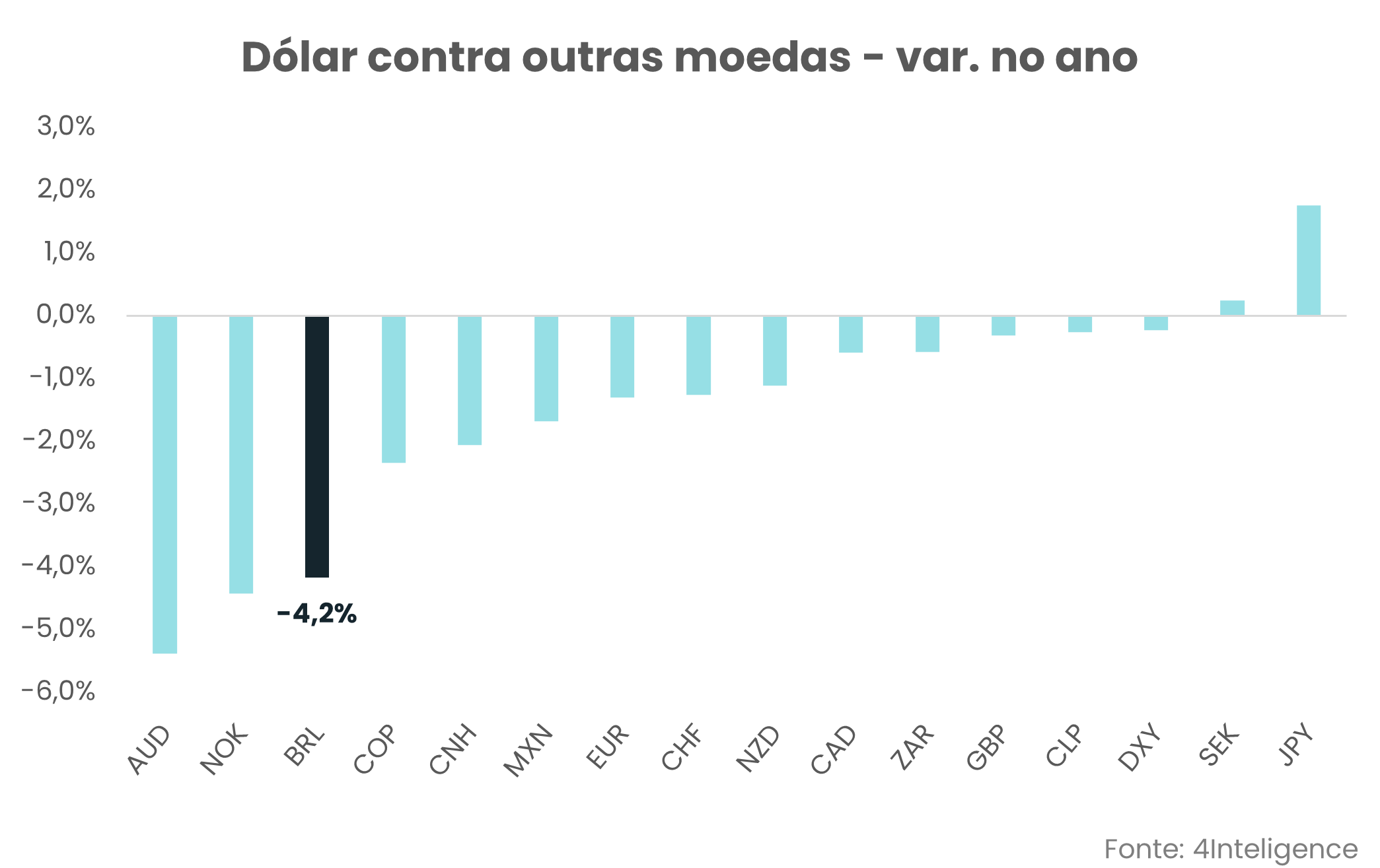 E é aqui que mora um dos paradoxos mais intrigantes de 2026: o dólar, historicamente o grande beneficiário de momentos de crise global, desta vez foi na contramão, como vimos acima. A explicação reside na própria política americana: as tarifas impostas pela administração Trump abalaram a confiança no dólar como moeda de reserva global, e os fundos de cobertura tornaram-se cada vez mais pessimistas com o dólar à medida que as perspectivas de paz no Oriente Médio avançavam. Para o Brasil, esse movimento trouxe um alívio inesperado: o real se valorizou, contribuindo (em parte) para o controle da inflação doméstica — mas, também, acendeu um alerta sobre a fragilidade dessa melhora, que depende de variáveis externas, que estão fora do nosso controle.