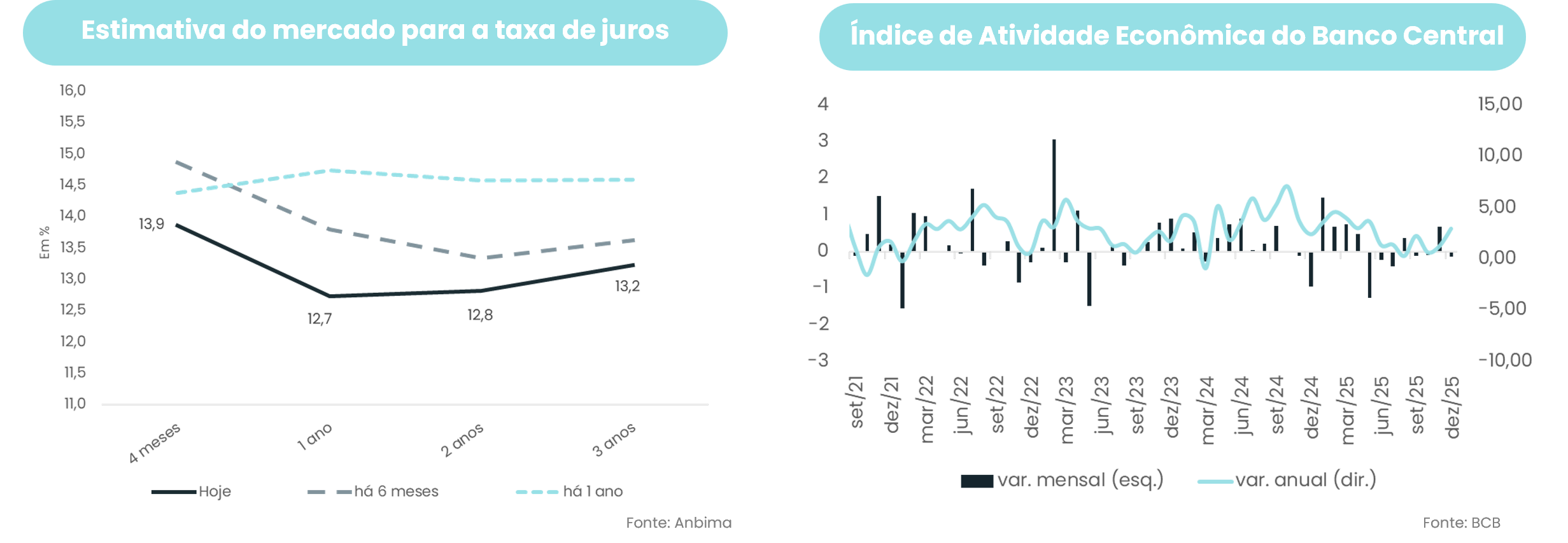 A curva de juros, por sua vez, sofreu um ligeiro aumento nesta semana após a divulgação do IBC-Br de dezembro. O Indicador teve um desempenho ligeiramente melhor do que as expectativas do mercado, sustentado, principalmente, pelo setor de serviços e pelo desempenho mais forte da agropecuária., sinalizando que a desaceleração da economia brasileira deverá ser mesmo gradual. Isso contribuiu para esfriar um pouco as hipóteses de cortes mais agressivos na Selic e, portanto, a curva de juros refletiu esse comportamento. A ideia é que o Banco Central siga o plano de voo de reduzir a Selic de forma lenta e gradual.