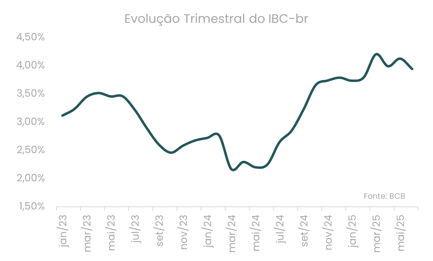 Junta tudo, mistura, acrescenta um pouco de fermento, outras coisinhas mais e pronto, temos a leitura do nosso queridinho IBC-Br, ou a prévia mensal do PIB. Para quem não conhece, o IBC-Br é um indicador de atividade econômica, divulgado mensalmente pelo Banco Central e considerado como se fosse uma prévia do PIB. O índice vem mostrando oscilações nos últimos meses, refletindo exatamente o contraste entre a força dos serviços e a instabilidade da indústria e do comércio. A última divulgação apontou crescimento moderado (ver gráfico), sinalizando que a economia não está em retração, mas deve avançar em ritmo mais contido no segundo semestre, sobretudo diante da política monetária ainda restritiva e do cenário externo menos favorável. Mas e aí? Será que essa receita vai dar certo no final?